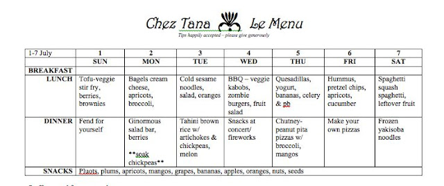And here's my menu for the week. If anyone wants recipes, just let me know!