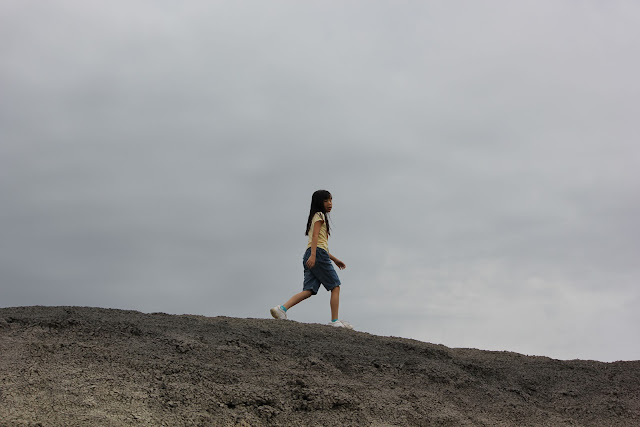 | Ethan teaching Cora how to slide down the rocks on her feet. You can't tell because of the camera angle, but it was very steep! |